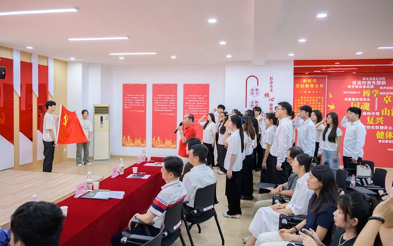 “我志愿加入中国共产党……”在老党员蓝永金同志的带领下,新接收的预备党员代表进行了庄严的入党宣誓。铿锵的誓言在会场回响,这是新党员对党的承诺,也是对自己的承诺,他们将以实际行动践行初心,为党和人民的事业贡献力量。